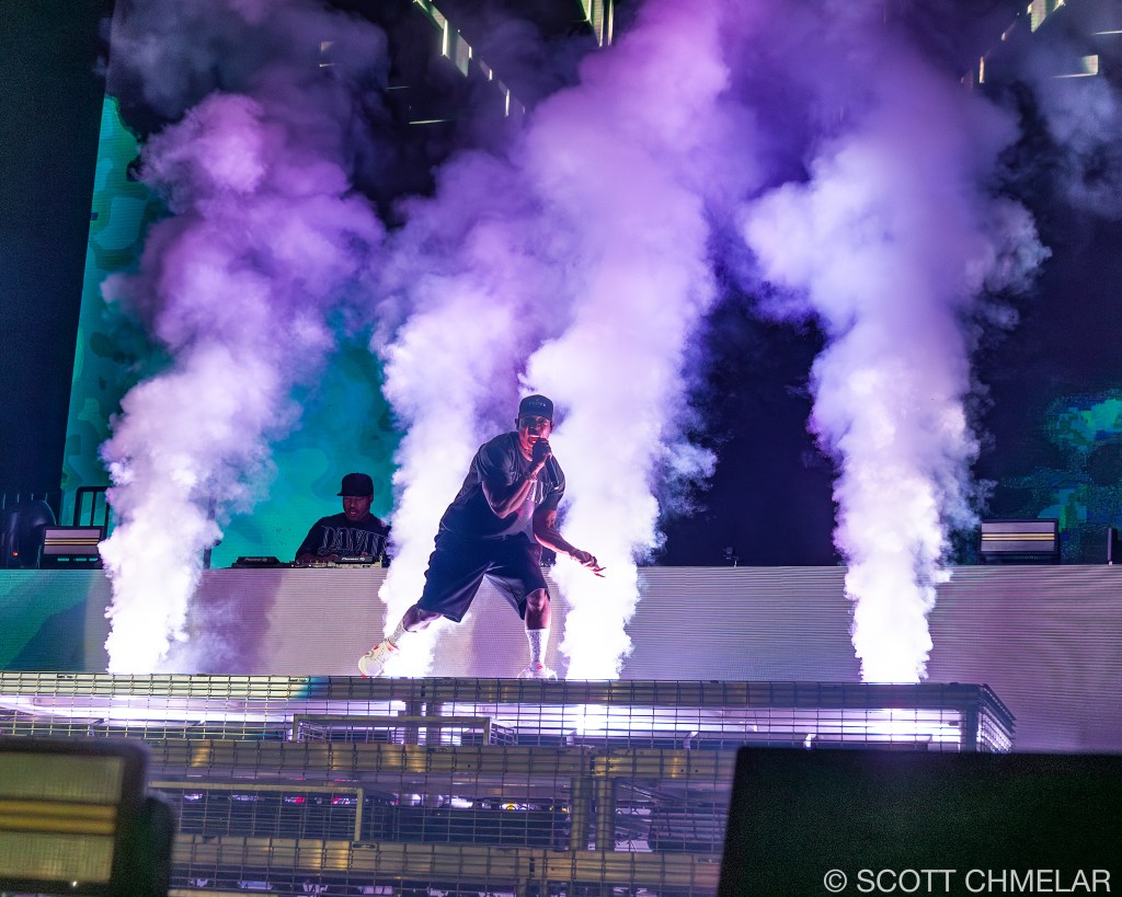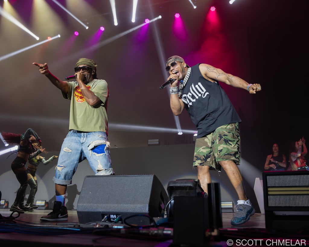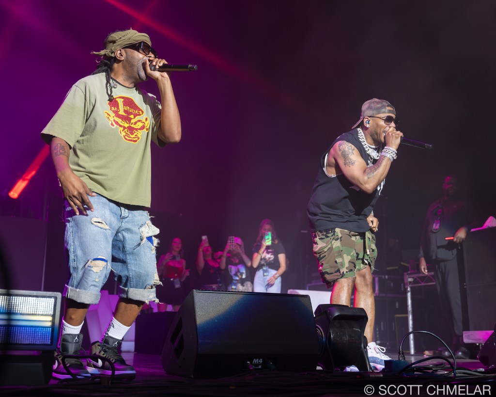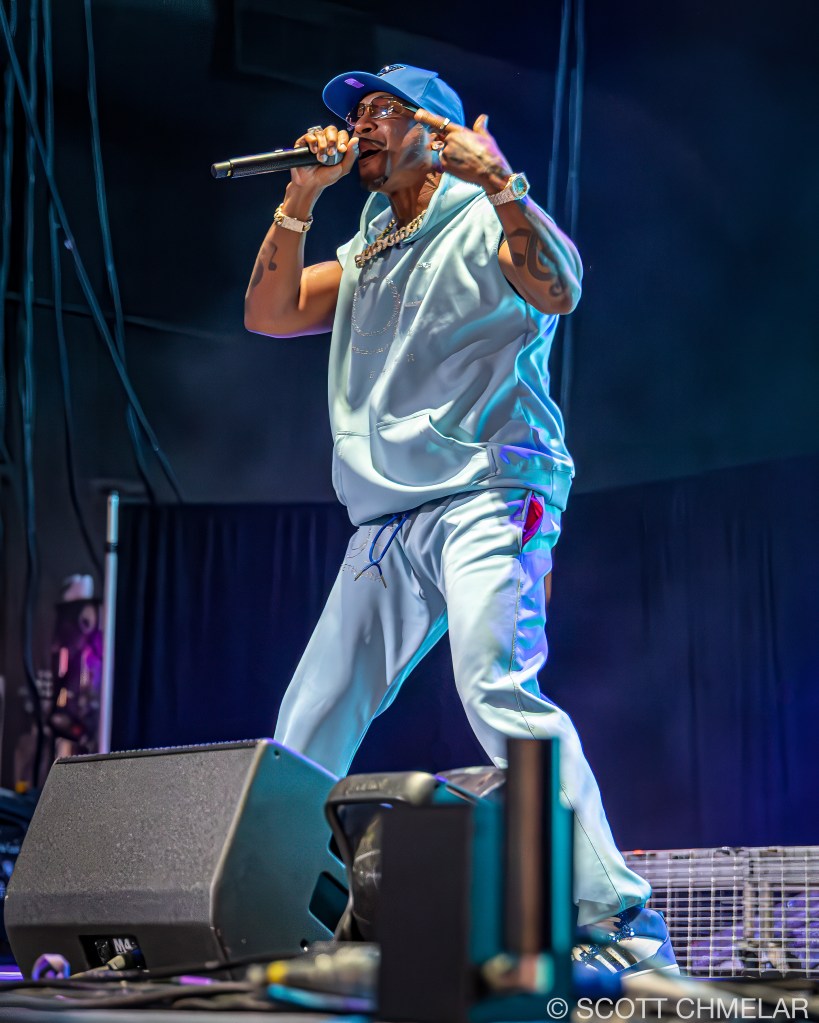 Chingy opened the Raleigh show with a dynamic set. He hit the stage with confidence, opening with his biggest hits like “Right Thurr”, “Holidae In”, and “One Call Away”. The crowd was still arriving during part of his set but when he dropped “One Call Away” and “Pullin’ Me Back”, there was a noticeable surge — people came forward, cell phones up, singing along. Chingy’s voice was strong, the backing band and DJ kept the tempo tight, and his stage presence was engaging. There was some movement in the staging: lights tracking him, occasional strobes on the chorus climaxes, and simple visual backdrops that projected video of earlier performance footage. His merch stand was well staffed and had the usual items — tour t-shirts, hoodies, a few limited prints; nothing overly elaborate but well polished. Chingy rose to fame in the early 2000s with multi-platinum albums Jackpot, Powerballin’, and Hoodstar. His work has earned him Grammy nominations, and he continues to record and tour independently. His latest release is Chinglish. More about his career and music can be found at https://www.chingyofficial.com.