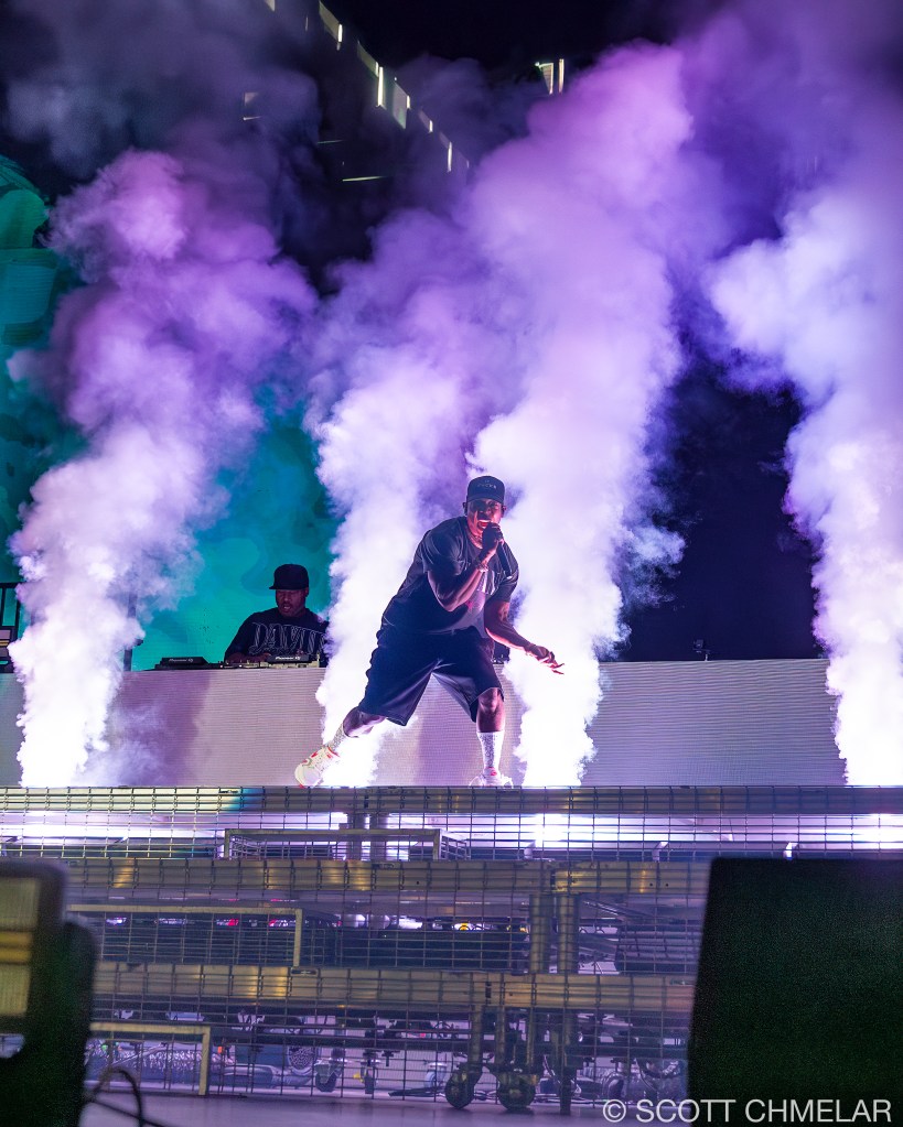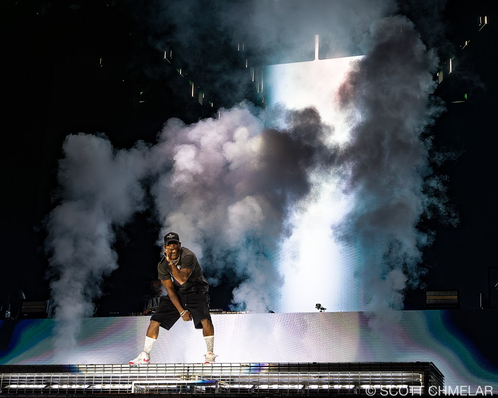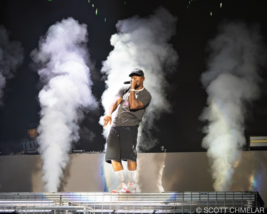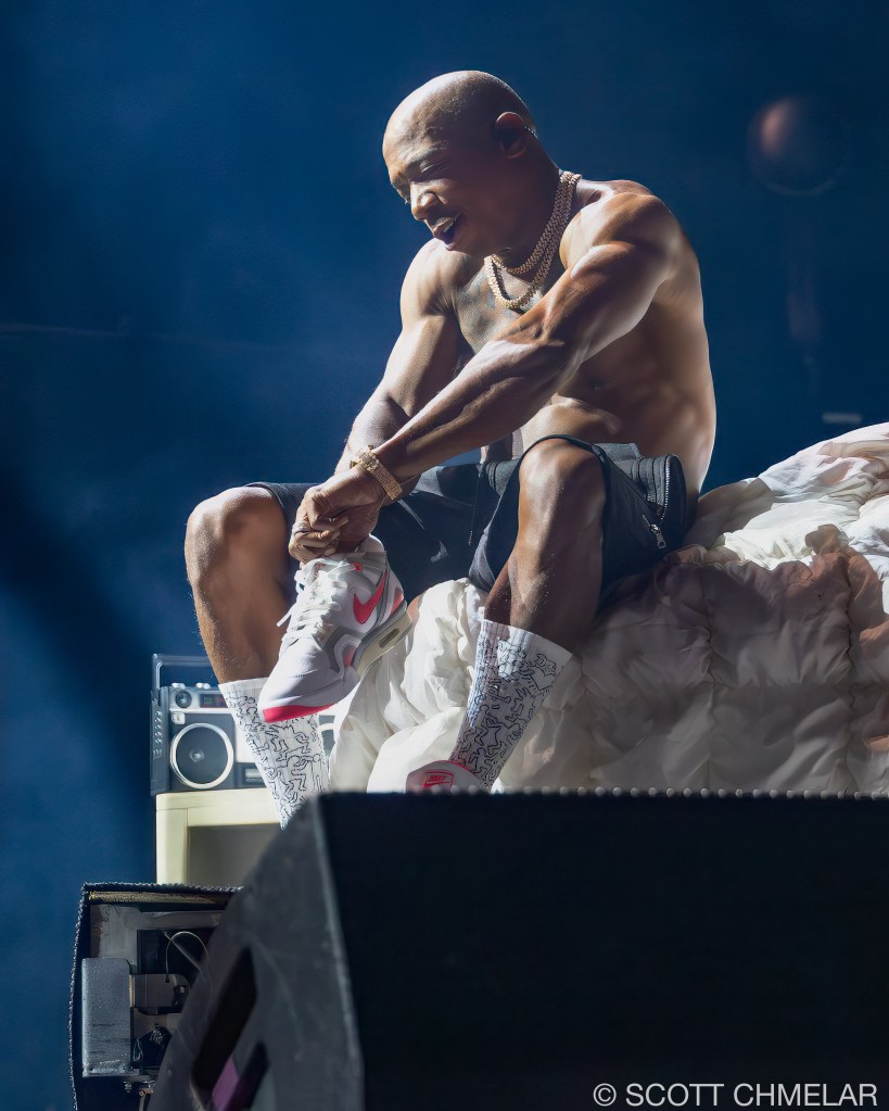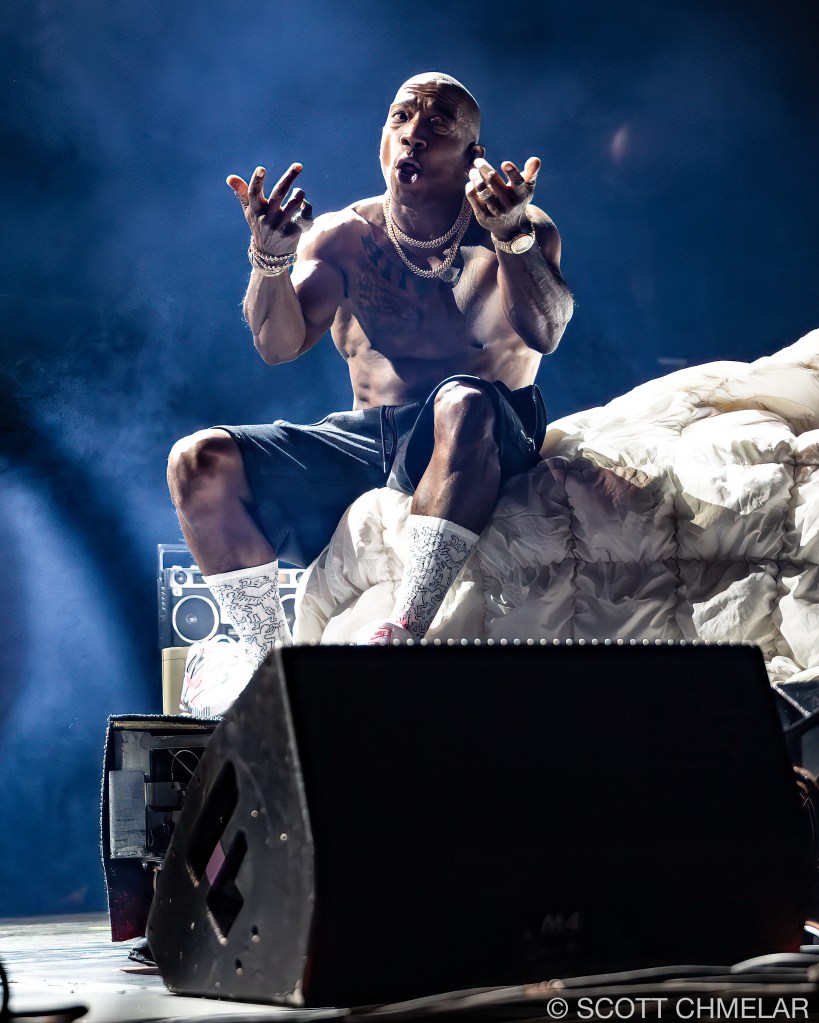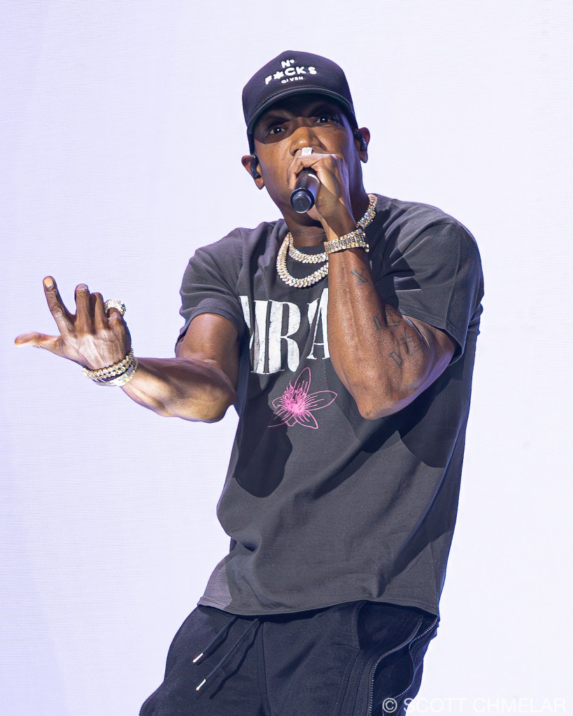 Ja Rule followed, coming on in what was clearly a bedroom-scene concept, with stage set pieces arranged to suggest intimate domestic interiors: lamps, a bed frame, subtle props, dimmer lights aside from spotlights. His entrance was punctuated by bursts from smoke cannons, adding dramatic flair to his opening. He ran through his catalogue: “Between Me and You”, “Always On Time”, “Holla Holla”, plus a few crowd favorites. His voice had its rough edges, but there was an earnestness when he rapped and when he sang/backed with melodic hooks; the audience responded loudly, especially when he did “Mesmerize”. Lighting during his set softened during slower songs, then picked up with warming colors and moving beams on the harder tracks. His merch included the standard: shirts, hats, and tour swag. Ja Rule, a key figure in late 1990s and 2000s hip-hop and R&B crossover, has multiple platinum albums including Venni Vetti Vecci, Rule 3:36, and Pain Is Love. He has earned Grammy nominations, Billboard awards, and remains a cultural figure through music and film. His latest project is 12.Twelve.XII. More about Ja Rule is at https://ruleyorkcity.com.