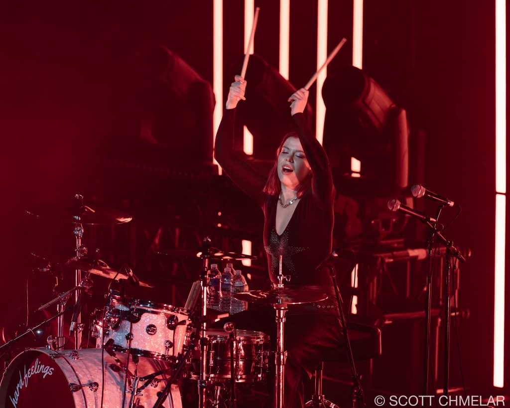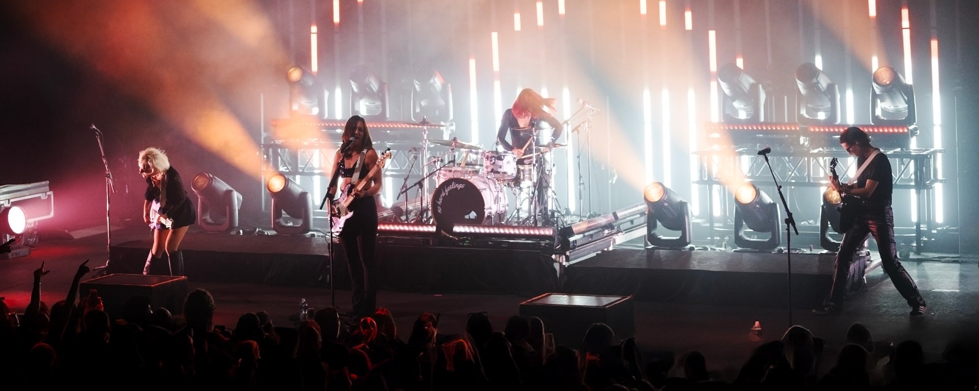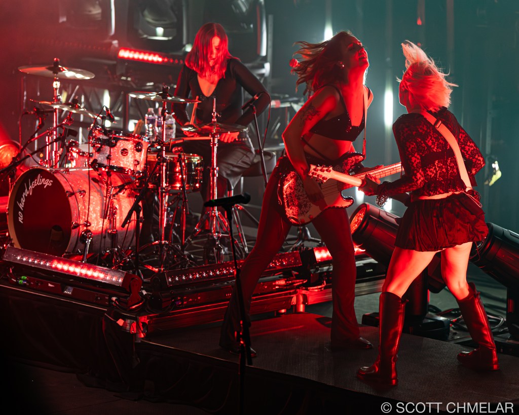 The Beaches (https://thebeachesband.com) have built an illustrious career since forming in Toronto in 2009, with current lineup Jordan Miller (lead vocals, bass), Kylie Miller (guitar, backing vocals), Leandra Earl (guitar, keyboards, backing vocals), and Eliza Enman-McDaniel (drums). They released two EPs early (The Beaches, Heights), followed by their debut studio album Late Show (2017), then EPs The Professional (2019), Future Lovers (2021), and the compilation Sisters Not Twins (The Professional Lovers Album) (2022). Their second full album Blame My Ex came out in 2023 via AWAL; it won the Juno Award for Rock Album of the Year, and the group also won or was nominated for Group of the Year (Junos) in 2024 and 2025. Their third studio album No Hard Feelings was released August 29, 2025, also via AWAL. The record is produced by a team including 300it, Riley Bell, Zale Epstein, Georgia Flipo, Aidan Hogg, Chris LaRocca, Lowell, Gus van Go, and Sam Willows. The album follows several singles (“Takes One to Know One,” “Jocelyn,” “Last Girls at the Party,” “Did I Say Too Much,” “Touch Myself,” and “Lesbian of the Year”) that set the tone for this tour. The No Hard Feelings Tour is a North American headlining run between August and November 2025, beginning in Chicago on August 29 and concluding in Moncton on November 15. Key cities include Raleigh, Boston, Washington DC, New York. At The Ritz in Raleigh on 9/21, The Beaches delivered a strong set mixing new material and fan favorites. The crowd was fully engaged, singing along to both new songs and older hits; the energy was high throughout. Stage visuals emphasized contrast and clarity: lighting shifts to highlight vocal moments from Jordan Miller, surges of color and backlighting during guitar-heavy songs, and a tight interplay between instruments. Merchandise was plentiful: No Hard Feelings themed T-shirts, vinyl of the new album, posters, enamel pins, tour hoodies. The mix of bold artwork from the album cover and lyric-driven prints made merch a draw both before and after the show.