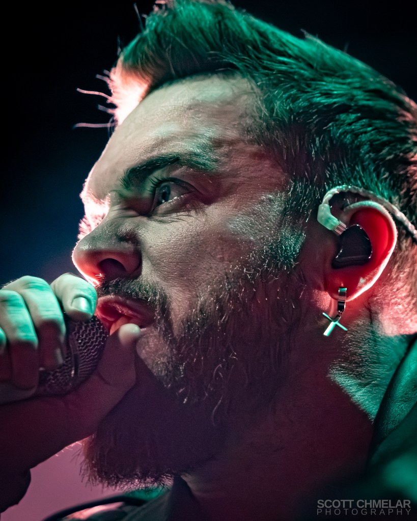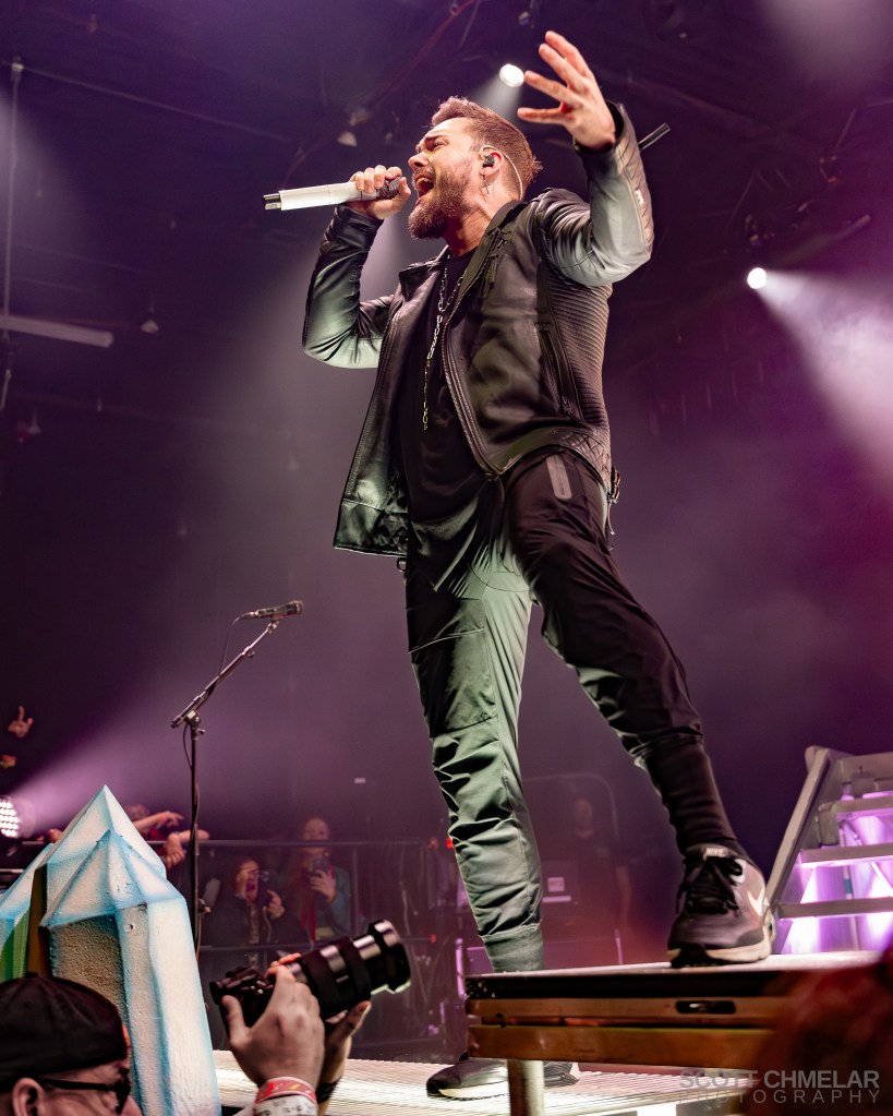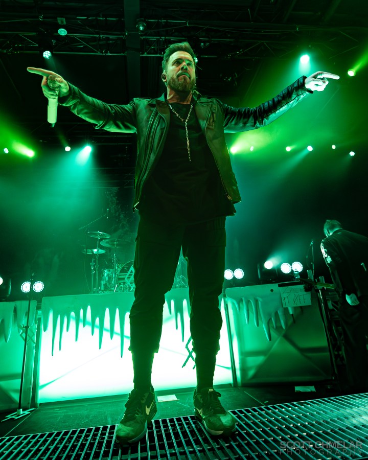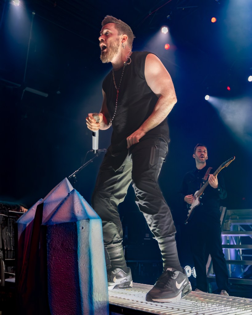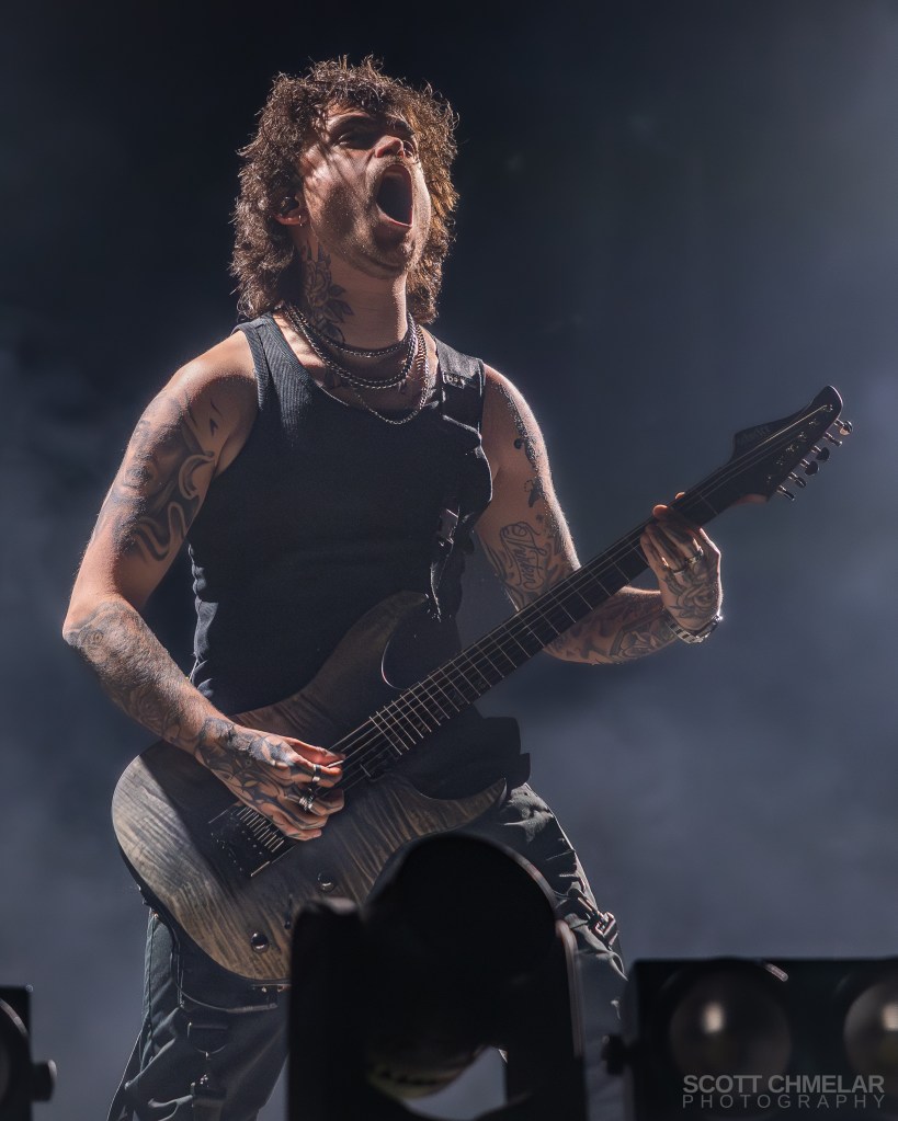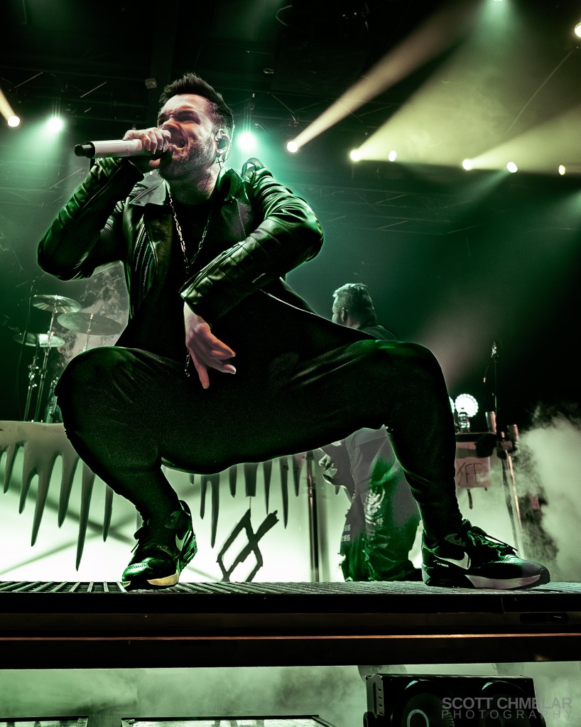 Fame On Fire, supporting the tour, continued to affirm their rise within modern hard rock. Originating in Palm Beach, Florida in 2013, the band transitioned from viral reinterpretations into a fully realized original act with albums including Levels, Welcome to the Chaos, The Death Card, and Chains. Their catalog reflects a blend of metal, hard rock, and alternative influences, released independently after earlier label partnerships. In Raleigh, their set was direct and forceful, with crisp rhythmic execution and a vocal delivery that stayed controlled while maintaining intensity. The crowd responded with visible movement and vocal participation, particularly during newer material. Their production leaned into darker lighting palettes and sharp transitions, supporting the band’s heavier aesthetic while remaining consistent with the tour’s overall visual presentation. Merchandise included album-era designs, hoodies, and signed items tied to recent releases. Official website: https://fameonfireband.com