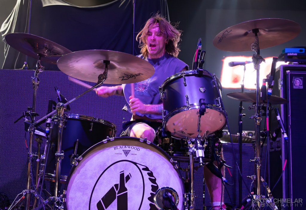 Thursday brought a sense of gravity that comes from helping build the framework of a genre. Originating in New Brunswick, New Jersey, the band’s discography—Waiting, Full Collapse, War All the Time, A City by the Light Divided, and No Devolución—has shaped post-hardcore’s emotional and political language for more than two decades. Their set honored that history without leaning on it, allowing songs to breathe and connect on their own terms. Older material carried lasting impact, while later-era songs felt equally grounded and relevant. The crowd’s energy shifted noticeably during their performance, marked by focused attention and collective release. Merchandise leaned into archival artwork and anniversary pieces without overselling nostalgia. Production choices stayed clean and supportive, with lighting cues reinforcing mood and structure. The mix emphasized vocal clarity and layered instrumentation. Thursday remain closely associated with Equal Vision Records and are openly engaged in social-justice advocacy and artist-support causes. Official site: https://www.thursday.net