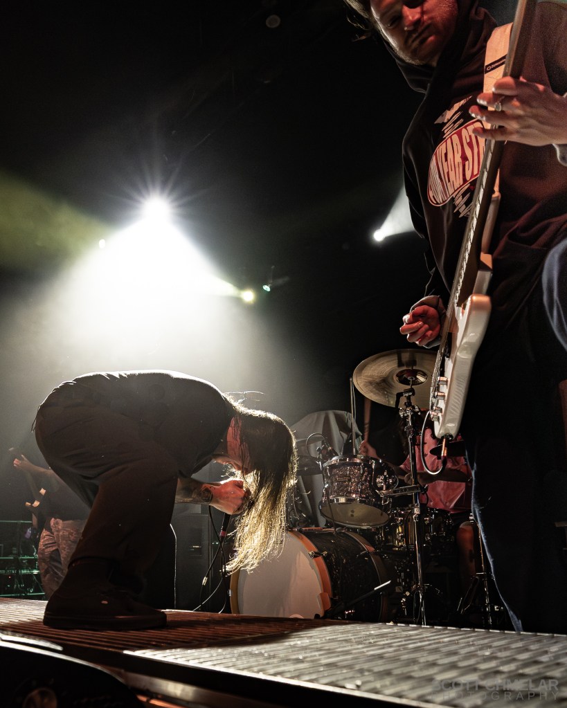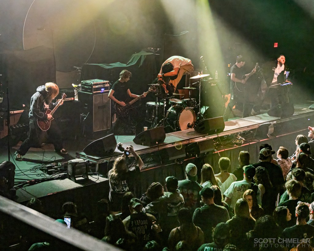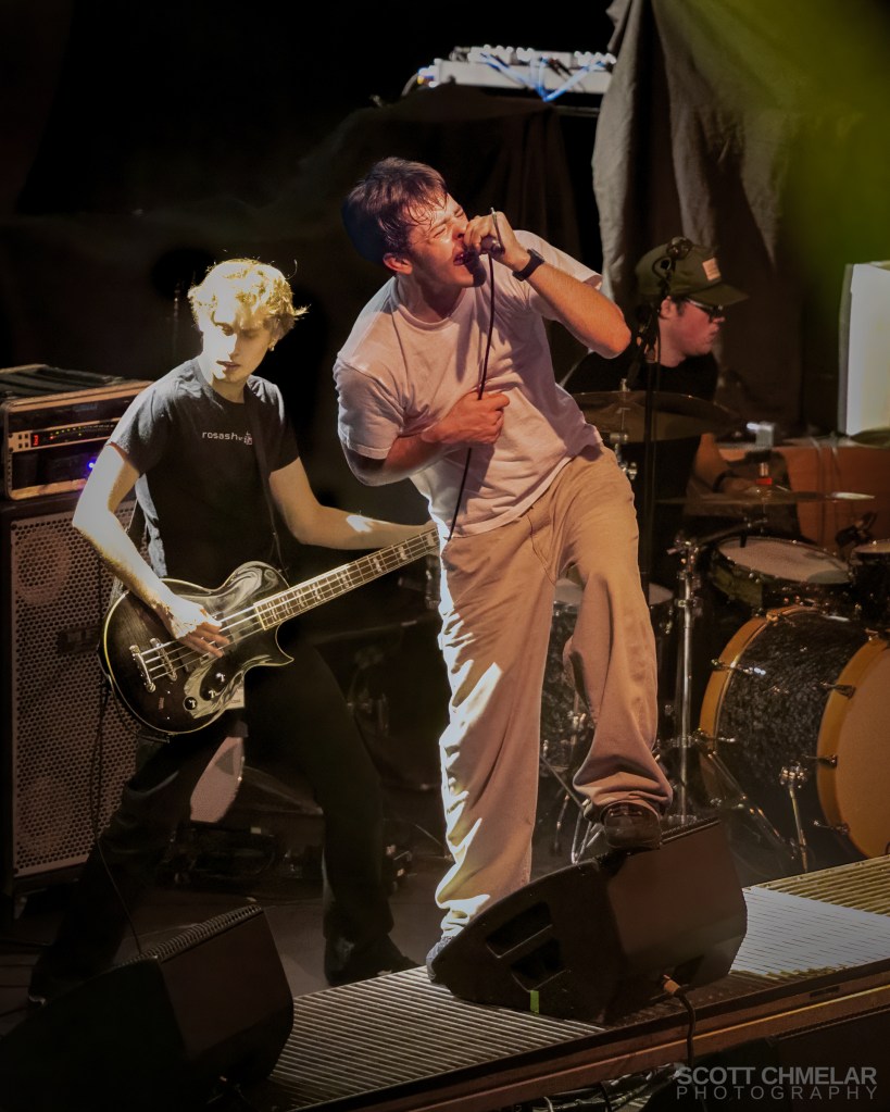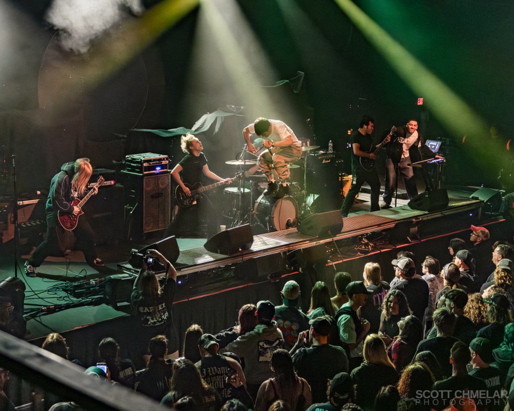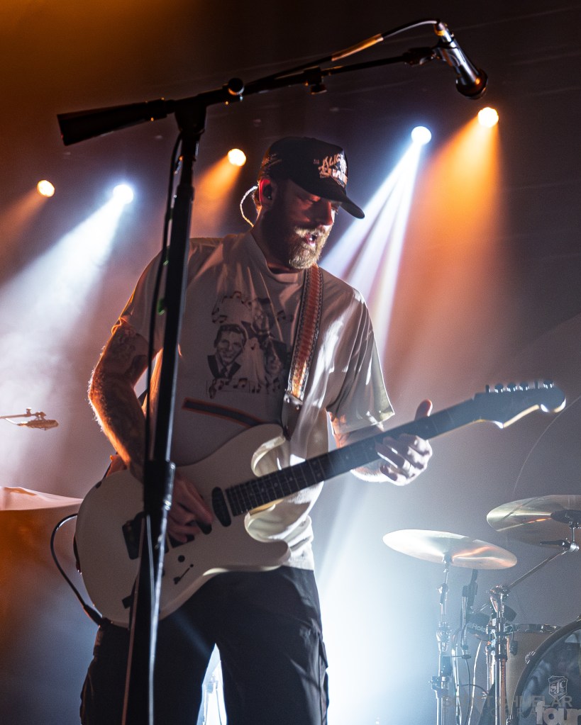 Split Chain represents the newer wave of alternative-heavy acts drawing from shoegaze textures and post-hardcore structure. Emerging from the U.K., their growing catalog and early releases have positioned them as a developing presence within the scene, with distribution tied to independent and emerging label partnerships. Their inclusion on the “Flowers Tour” reflects a deliberate attempt to introduce a tonal shift within the lineup, adding atmosphere without sacrificing weight. In Raleigh, their performance leaned into layered guitar work and controlled vocal delivery, prioritizing cohesion over overt crowd interaction. The production approach remained consistent with the tour package, though their sound relied more heavily on front-of-house balance to preserve detail, suggesting close coordination with the tour’s FOH engineer. Merchandise was limited but focused, with early-run prints and branding tied to their initial releases. While still early in their career, Split Chain is gaining attention through festival slots and support tours, with industry recognition building steadily. Their performance indicated a band in transition, moving from emerging status toward a more defined identity. Latest release: https://splitchainband.com