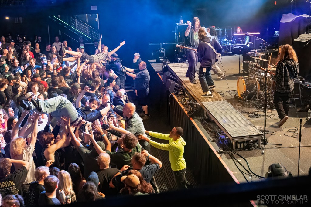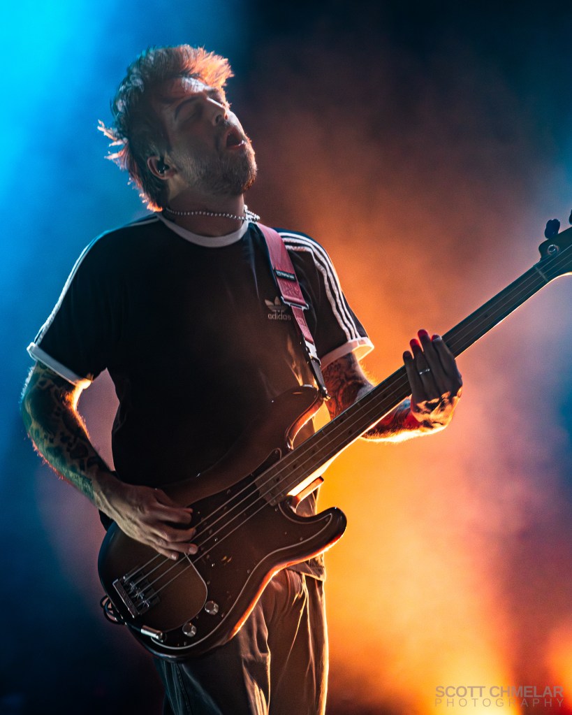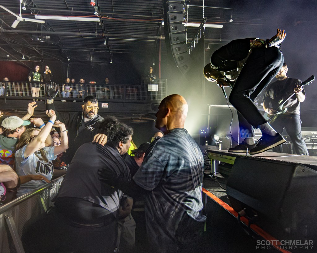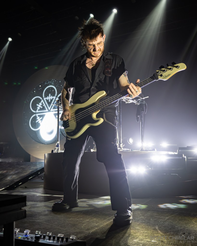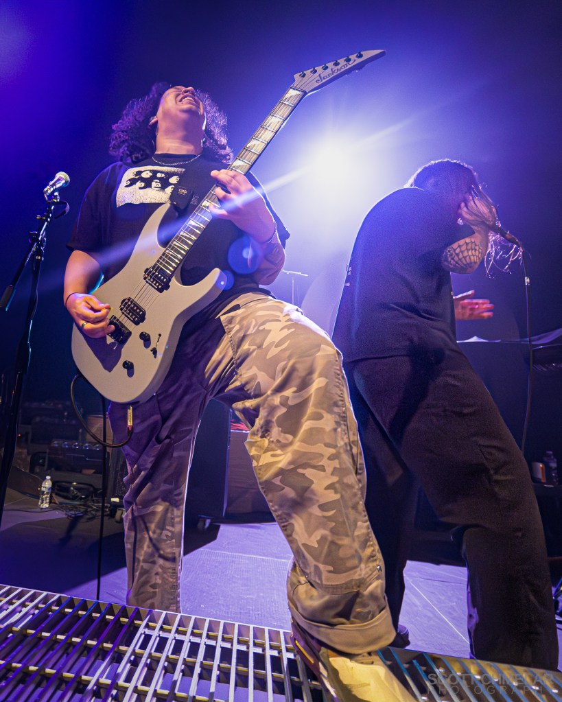 Split Chain represents the newer wave of alternative-heavy acts drawing from shoegaze textures and post-hardcore structure. Emerging from the U.K., their growing catalog and early releases have positioned them as a developing presence within the scene, with distribution tied to independent and emerging label partnerships. Their inclusion on the “Flowers Tour” reflects a deliberate attempt to introduce a tonal shift within the lineup, adding atmosphere without sacrificing weight. In Raleigh, their performance leaned into layered guitar work and controlled vocal delivery, prioritizing cohesion over overt crowd interaction. The production approach remained consistent with the tour package, though their sound relied more heavily on front-of-house balance to preserve detail, suggesting close coordination with the tour’s FOH engineer. Merchandise was limited but focused, with early-run prints and branding tied to their initial releases. While still early in their career, Split Chain is gaining attention through festival slots and support tours, with industry recognition building steadily. Their performance indicated a band in transition, moving from emerging status toward a more defined identity. Latest release: https://splitchainband.com
