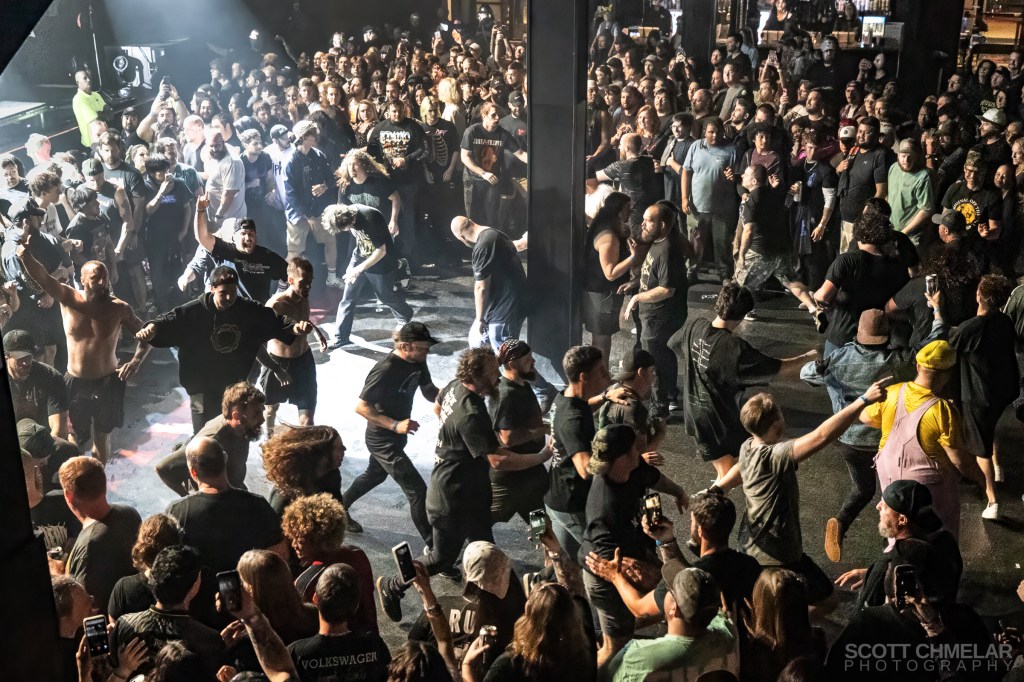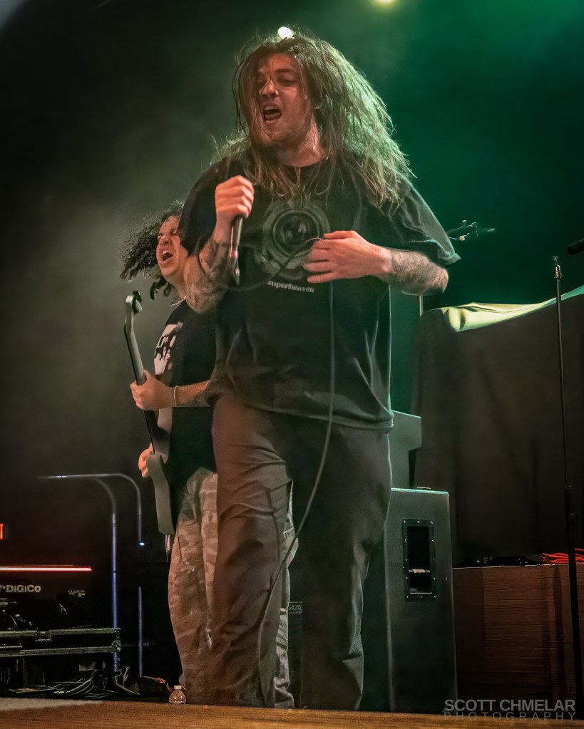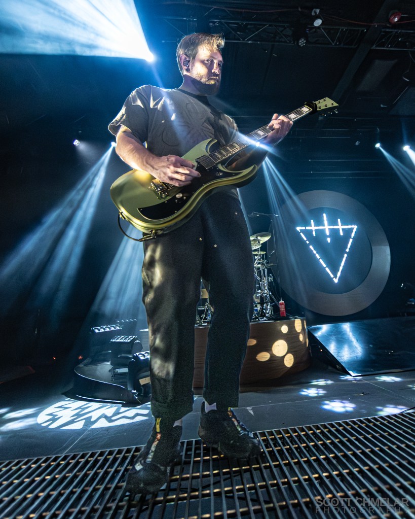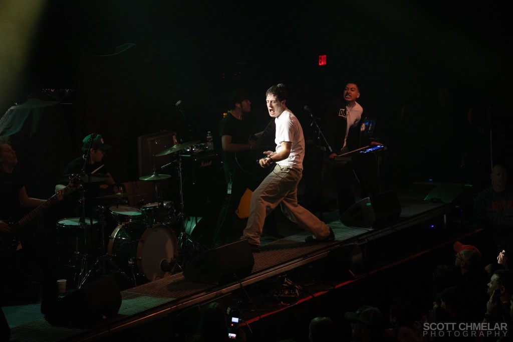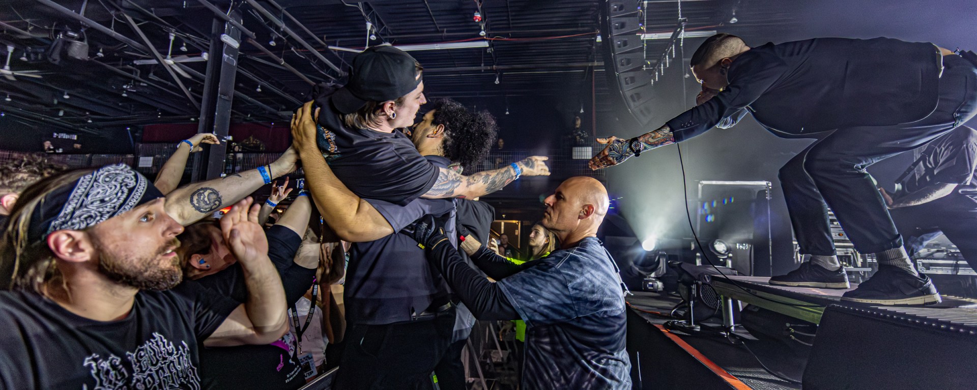 Split Chain represents the newer wave of alternative-heavy acts drawing from shoegaze textures and post-hardcore structure. Emerging from the U.K., their growing catalog and early releases have positioned them as a developing presence within the scene, with distribution tied to independent and emerging label partnerships. Their inclusion on the “Flowers Tour” reflects a deliberate attempt to introduce a tonal shift within the lineup, adding atmosphere without sacrificing weight. In Raleigh, their performance leaned into layered guitar work and controlled vocal delivery, prioritizing cohesion over overt crowd interaction. The production approach remained consistent with the tour package, though their sound relied more heavily on front-of-house balance to preserve detail, suggesting close coordination with the tour’s FOH engineer. Merchandise was limited but focused, with early-run prints and branding tied to their initial releases. While still early in their career, Split Chain is gaining attention through festival slots and support tours, with industry recognition building steadily. Their performance indicated a band in transition, moving from emerging status toward a more defined identity. Latest release: https://splitchainband.com