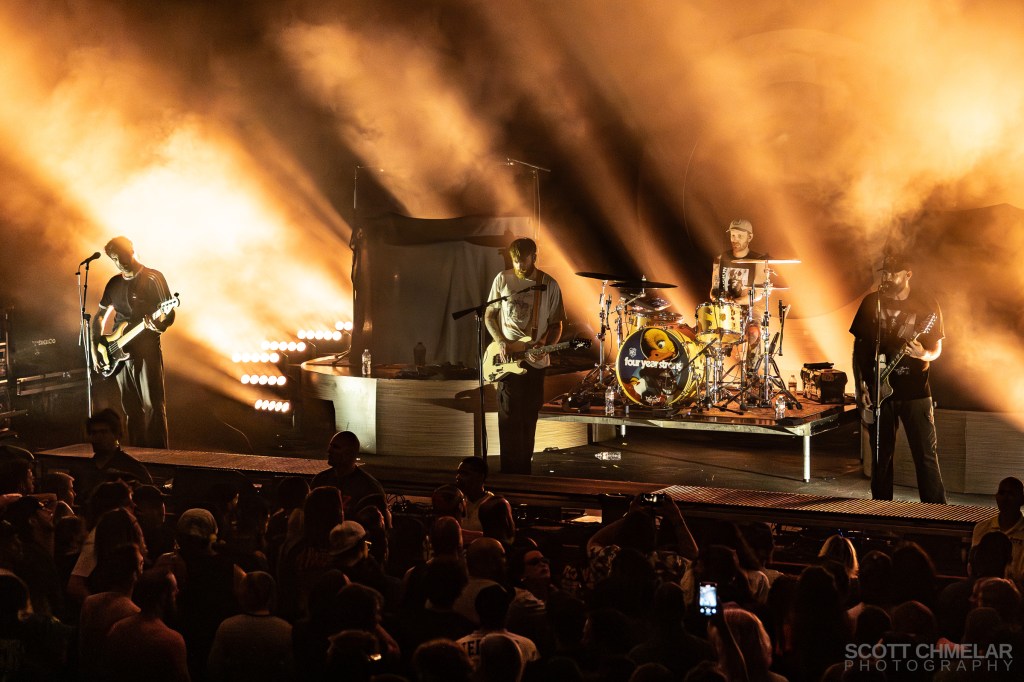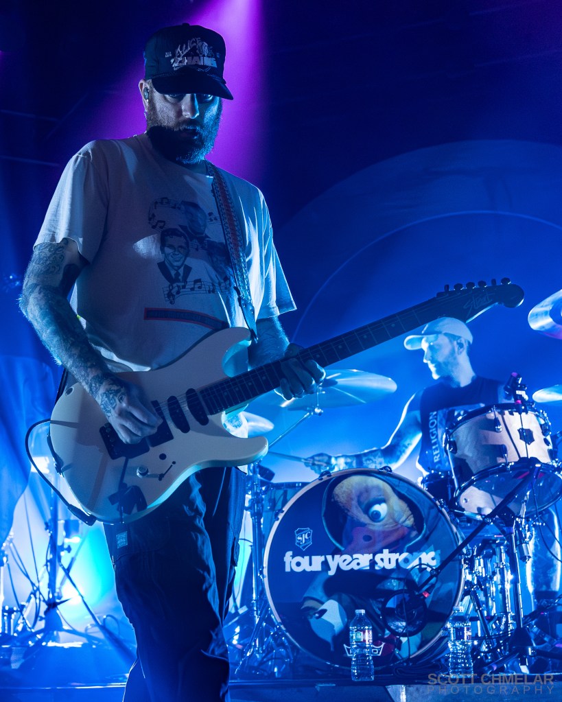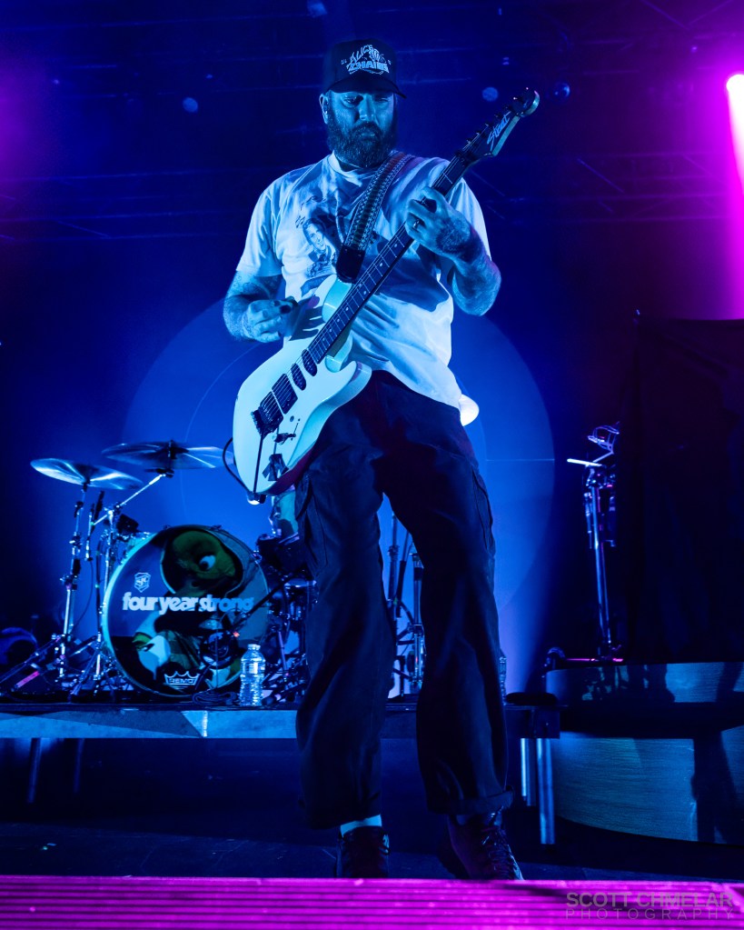 Four Year Strong brought a contrasting energy shaped by nearly two decades of consistency in melodic hardcore and pop-punk crossover. Originating from Worcester, Massachusetts, the band’s discography includes Rise or Die Trying, Enemy of the World, In Some Way, Shape, or Form., Four Year Strong, Brain Pain, and their most recent material released through Pure Noise Records. Their presence on the “Flowers Tour” adds a structural balance, giving the lineup a broader emotional range while maintaining intensity. Their Raleigh performance was direct, fast-paced, and tightly executed, with little downtime between songs and a focus on audience engagement through pacing rather than theatrics. Lighting and staging followed a shared touring rig, likely coordinated through the same production vendor, maintaining visual continuity across the lineup. Their merchandise table reflected long-standing branding, including anniversary designs tied to earlier albums. Over their career, Four Year Strong has maintained chart presence and strong fan loyalty, often cited as a defining act in easycore’s development. They have participated in charity compilations and benefit shows, particularly within the punk and hardcore community. Their set reinforced their role as a reliable, experienced act that understands how to sustain momentum in a multi-band tour format. Latest release: https://fouryearstrong.com
