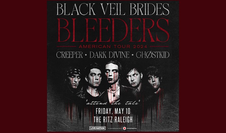 Black Veil Brides blackveilbrides.net Black Veil Brides is an American rock band based in Hollywood, California. The group formed in 2006 in Cincinnati, Ohio, and is currently composed of lead vocalist Andy Biersack, rhythm guitarist and violinist Jinxx, lead guitarist … Continue reading Black Veil Brides w/ special guests Creeper, Dark Divine and Ghostkid appearing at The Ritz of Raleigh, NC 5/10/24 @ 6 PM