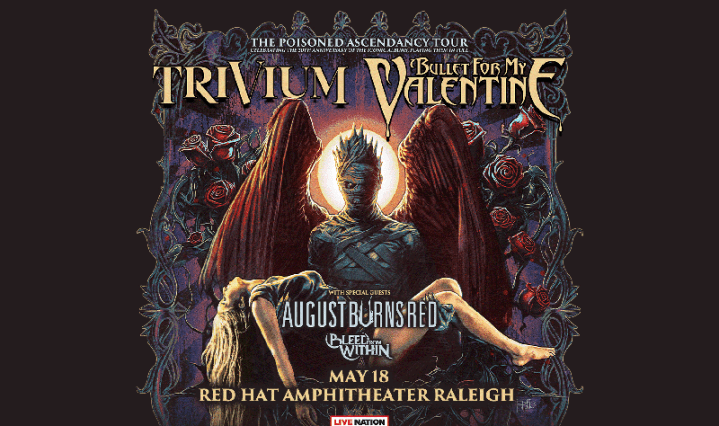 The Poisoned Ascendancy Tour 2025 is set to deliver a monumental evening of metal at Raleigh’s Red Hat Amphitheater on May 18, 2025. Co-headliners Trivium and Bullet for My Valentine will commemorate the 20th anniversaries of their landmark albums, Ascendancy … Continue reading Trivium & Bullet for My Valentine w/ special guests August Burns Red & Bleed From Within performing at Raleigh’s Red Hat Amphitheater on May 18, 2025