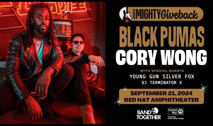 BAND TOGETHER – MIGHTY GIVEBACK 2024 https://www.bandtogethernc.org/mission Connecting our community to nonprofits through the power of live music. Band Together is an amazing story full of hope, optimism, and a dose of rebellion. Band Together was imagined by Triangle community … Continue reading Band Together Presents: Black Pumas & Cary Wong w/ special guests Young Gun Silver Fox and Terminator X playing Red Hat Amphitheater, Raleigh, NC