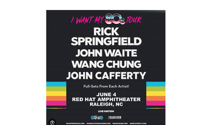 The “I Want My ’80s Tour” is set to electrify Raleigh, NC, on Wednesday, June 4, 2025, at the Red Hat Amphitheater. Headlining the event is the iconic Rick Springfield, whose fusion of guitar-driven power pop and new wave sensibility … Continue reading Rick Springfield brings “I Want My ’80s Tour” w/ John Waite, Wang Chung and John Cafferty to Red Hat Amphitheater of Raleigh, NC 6/4/25
